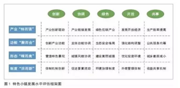 从特色小镇的内涵出发,将其发展水平评估体系分为4个维度,分别为产业维度、功能维度、形态维度和制度维度;将发展理念和内涵进行交叉构建,得到评估框架(图1)。