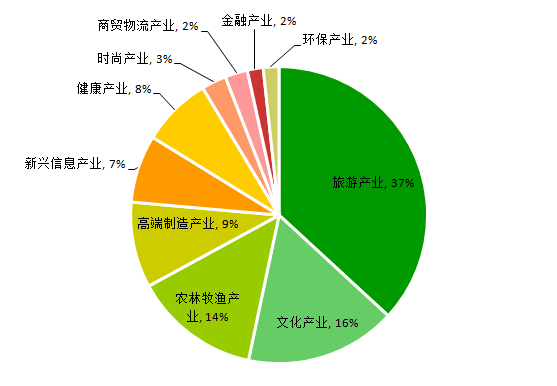 新兴信息、健康、时尚、金融、环保等新兴产业占比在30%以上,相对较少。但为促进产业转型升级,国家在第二批特色小镇申报时提出“以旅游文化产业为主导的特色小镇推荐比例不得超过1/3”,对新兴产业给予更多的政策倾斜。