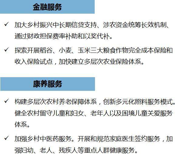 提出建设三区三园一体,大规模实施节水工程、盘活利用闲置宅基地,大力培育新型农业经营主体和服务主体,积极发展生产、供销、信用“三位一体”综合合作等。
